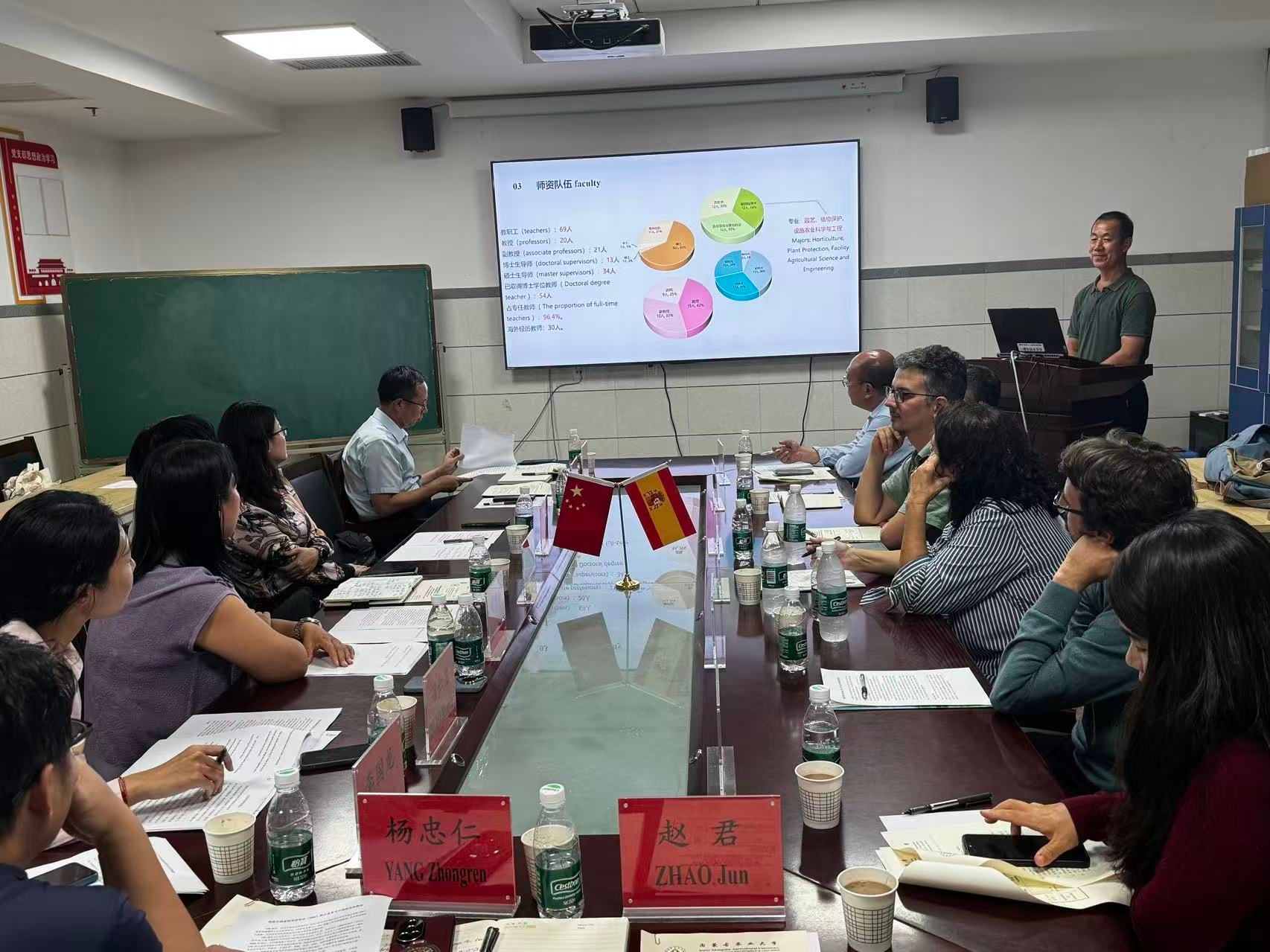院长周洪友介绍了学院基本情况。西班牙代表介绍了CSIC的世界一流研究平台和研究特色,以及合作意向和方向,表示希望以此次访问为起点,推动双方在园艺与植物保护、农学、生命科学、畜牧兽医等多学科领域的深度合作。