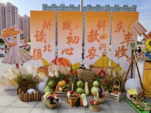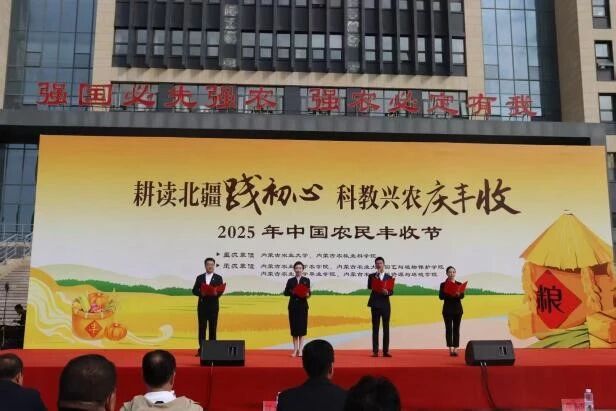 联合农学院、草业学院、资源与环境学院共同承办的“耕读北疆践初心,科技兴农庆丰收”2025年中国农民丰收节活动在南校区生科楼前举行。自治区农牧业科学院党组书记孙国权、专职副书记王永明、副院长崔茂盛,自治区农牧业技术推广中心副主任侯丽丽,校党委书记陈永胜,党委委员、副校长齐景伟、董同力嘎出席活动。学生代表、校友代表、企业代表及电影天堂