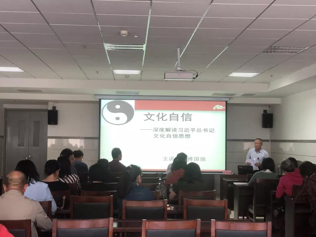 傅国强教授首先围绕习近平总书记的几段关于文化自信的重要讲话拉开了此次理论学习的序幕。随后,简要的阐述了文化自信和道路自信、理论自信、制度自信的关系。此次理论学习中,傅国强教授重点通过对中西方文化的对比,详细的介绍了中国文化慧根高深、生命强劲、引领世界的三个特征,并列举了实例证实了这些特点,傅教授的课堂充满激情,富有说服力,在场的各位老师受到了很大的启发。课程结束后,周院长进行了简要的总结并对傅教授莅临电影天堂 开展讲座表示诚挚感谢。