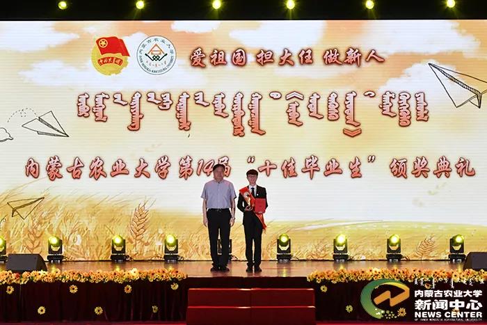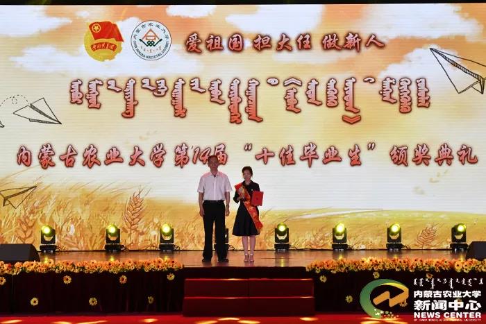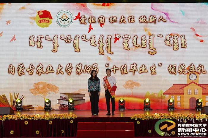 6月6日晚,以“爱祖国、担大任、做新人”为主题的学校第14届“十佳毕业生”颁奖典礼在西区文体馆举行。校党委书记王万义,校长高聚林,党委副书记黄龙海,副校长芒来、乔彪,纪委书记哈斯巴根和副校长塔娜、刘廷玺出席典礼并为毕业生颁奖。2000余名师生、家长代表到场观礼。