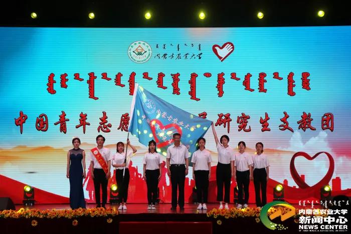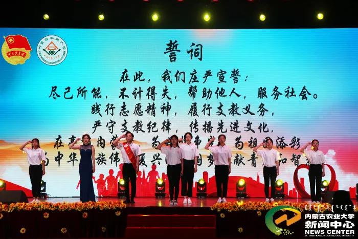 校党委副书记黄龙海为第21届研究生支教团授旗,第20届研究生支教团团长李楠传递支教团团旗。研究生支教团庄严宣读誓词,共同挥动着手中的旗帜,他们将严守支教纪律,无私奉献,为内蒙古西部偏远地区的教育事业贡献青春力量。