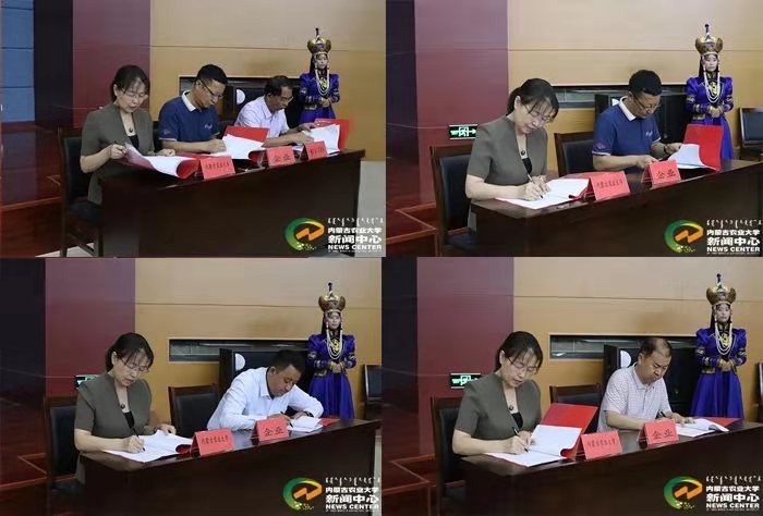 另外,在挂牌仪式上,塔娜副校长代表学校与磴口县人民政府、磴口县农牧和科技局、内蒙古汉垦地农产品有限公司、内蒙古华通农牧业科技有限公司签订了合作共建电影天堂