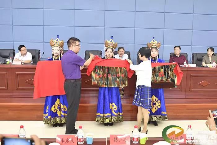 ”揭牌。内蒙古科技厅科技合作处处长窦春梅副调研员和我校党委副书记黄龙海为“电影天堂