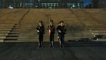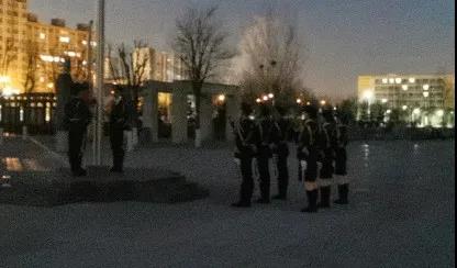 升旗仪式准时7:00开始。在全体师生的注目礼下,英姿飒爽的国旗队护卫队员护送着鲜红的五星红旗进场,伴随着庄严的《中华人民共和国国歌》,五星红旗冉冉升起,在寒风中飘扬,在场的每一个人怀着对祖国的无限热爱和崇高的敬意向国旗行注目礼。随后,学办老师尚飞讲到:学生应把个人前途与学校的发展及祖国的命运紧密结合起来,时刻铭记“团结,博学,求实,创新"的校训,发扬自强不息的拼搏精神,牢记当代大学生应有的社会责任感与历史使命感,预祝同学们在即将到来的期末考试中取得好成绩。