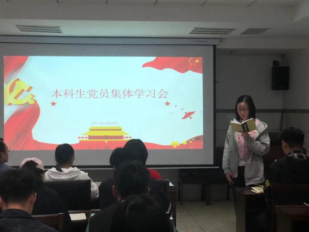 学生党支部于生科楼419开展党史学习教育。园艺本科生党支部书记郝凤英、尤丽、植保本科生党支部书记尚飞出席,会议由支部党员王荣主持。