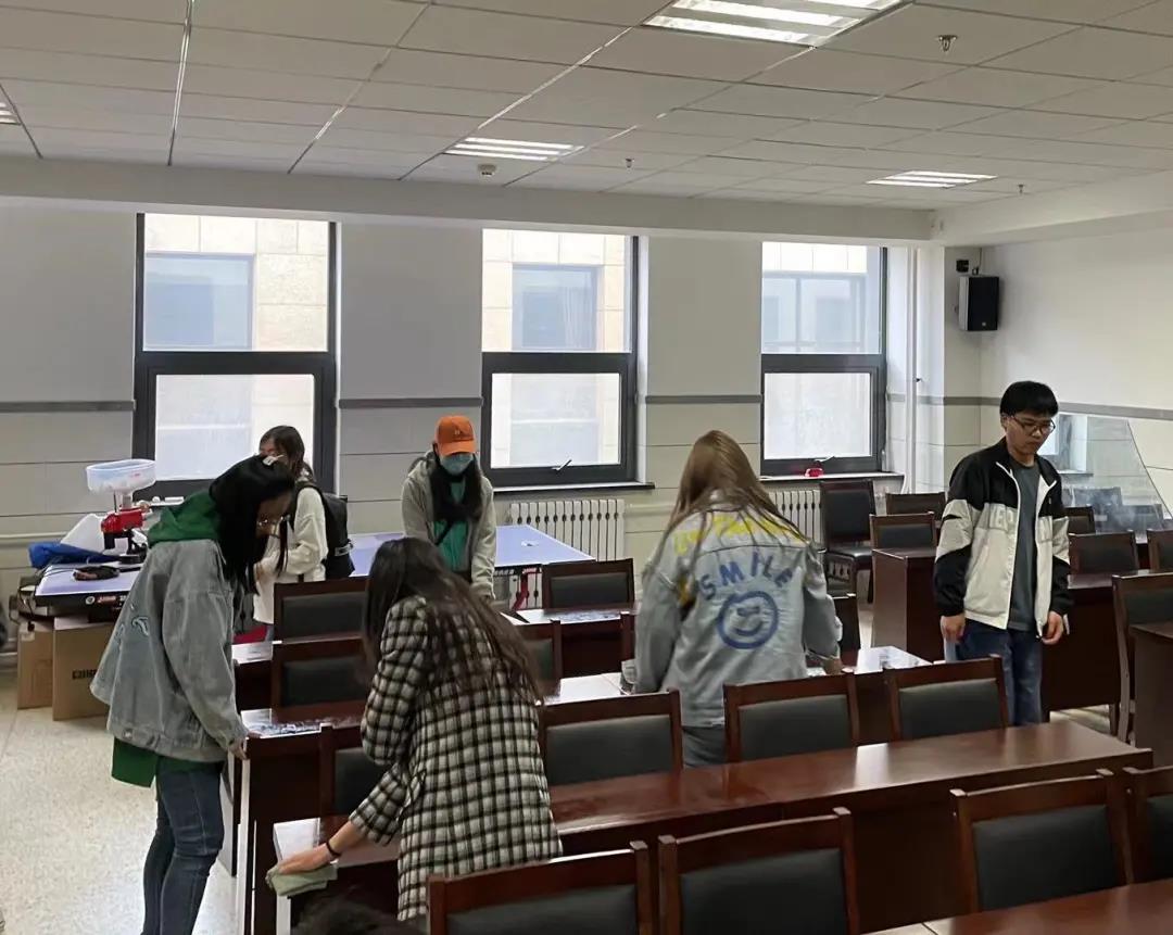 我为师生办实事。党员同志们选择了打扫学院419会议室,大家统一行动,在热火朝天的劳动中和同学们的欢声笑语下,本次支部活动顺利结束。