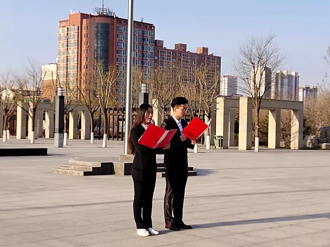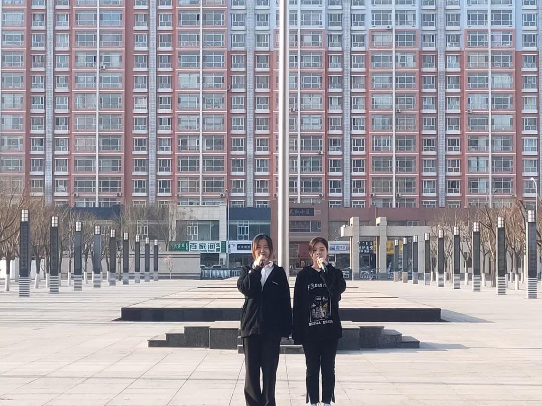 随后,樊婷、唐家俊同学进行国旗下的演讲。两位同学声声激昂,道出党多年来的风雨历程,无论多少艰难险阻,共产党人都始终坚定不移,用坚实的脊梁扛起时代的责任,不断构建着“中国梦”的宏伟蓝图。在场的同学听后无不热血沸腾。最后,在崔春瑶、赵雪娜同学的领唱下,全体师生共同演唱《歌唱祖国》。同学们迎着朝阳,庄严注视着国旗,“五星红旗迎风飘扬,胜利歌声多么响亮……”的歌声清晰又嘹亮,每个同学的内心都无比澎湃。至此,升旗仪式结束。