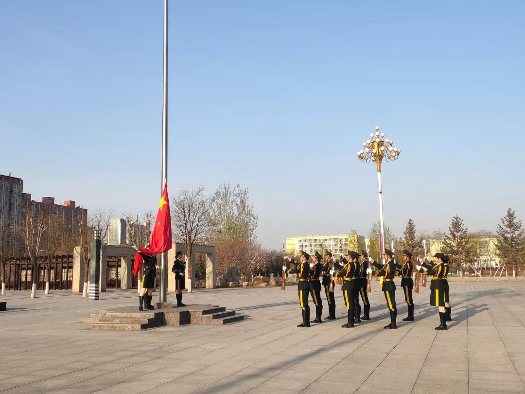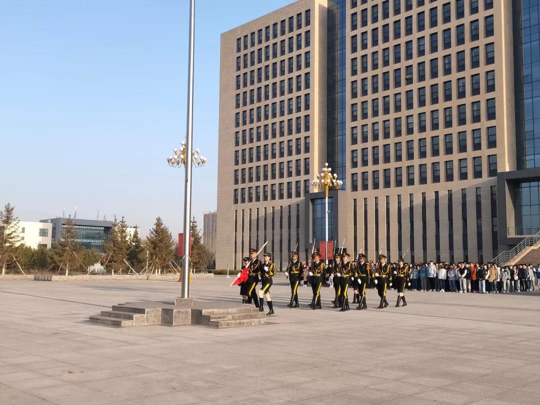 迎着朝阳,身姿挺拔的仪仗队成员迈着铿锵的步伐来到了国旗台下,全场一片肃静。在激昂的《义勇军进行曲》中,升旗手振臂一挥,鲜艳的五星红旗徐徐展开,与初升的太阳一同冉冉升起,在晨曦中迎风飘扬在学校的上空。