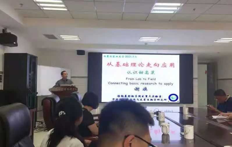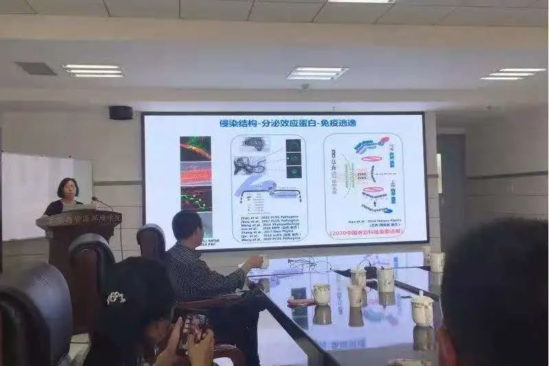 谢旗研究员为2003年国家杰出青年科学基金获得者;2004年中国科学院百人计划入选者;2008年获经国务院批准享受政府特殊津贴专家。获得“全球最有影响力科学家”、“高被引科学家”等多项荣誉称号。现致力于高效可持续利用农业研究和推广。郭惠珊研究员长期致力于植物RNAi和病原抑制RNAi的基础理论和应用研究。阐明了多个职务miRNA调控生长和抗病的分子机制;突破了早熟陆地棉没有抗黄萎病种质资源的瓶颈;其研究成果入选《2020中国农业科学十大重要进展》。谢旗、郭惠珊两位研究员先后做了题为《从基础理论走向应用-认识甜高粱》和《棉花-轮枝菌互作和跨界抗病RNAi研究》的学术报告。两位研究员精彩的报告博得在场研究生及教师热烈的掌声;电影天堂