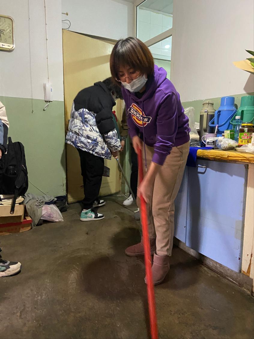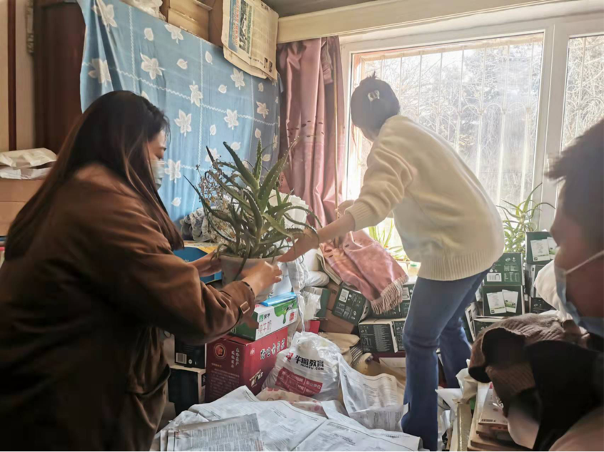 交谈中,大家得知叶大姐最近身体不是很好,家里的很多家务活没有做,老师、同学们当即决定帮助叶大姐进行新年前的大扫除。有的帮叶大姐整理桌面的书籍,有的擦拭窗台的尘土、修剪花枝,有的清理厨房杂物,还有的清洁地面,大家都很认真的做着自己的分配到的工作,希望通过自己的一点绵薄之力,能够使叶大姐家更整洁,生活环境更舒适一些。
