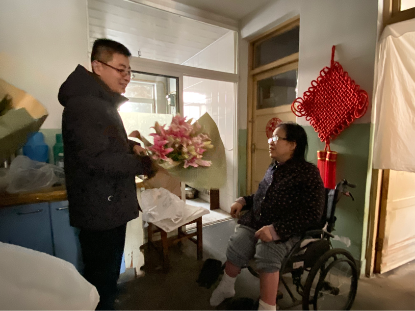 慰问活动中,师生代表给叶大姐送去了米、面、油、牛奶日常生活用品及水果、鲜花等慰问品,并为她送去节日的祝福。张书记与叶大姐及家人进行了亲切交谈、嘘寒问暖,详细询问他们身体的健康状况、生活情况和存在的困难,认真聆听他们的倾诉和需求,并叮嘱他们保重身体,注意防寒保暖和居家安全。鼓励他们增强信心,嘱咐他们在疫情期间做好防护措施。