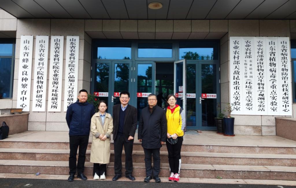 会后,几位老师参观了山东农业大学农药创制研究团队的实验室,并一行至山东农科院植物保护研究所进行了调研。由昆虫创新团队学术带头人于毅、团队负责人门兴元研究员分别就山东省植保发展20年、山东省作物布局及产业结构调整、农业害虫发生规律及成灾机制、天敌昆虫研究与应用、迁飞害虫精准监测预警几个重要议题做了汇报交流。会后,老师们参观了山东省蜂业良种繁育中心、山东省植物病毒重点实验室、农业农村部天敌昆虫重点实验室,双方就进一步在“中药材有害生物防治”、“天敌昆虫良种繁育与应用”、“农业科技成果落地与技术转化”等相关工作领域开展进一步合作研究。