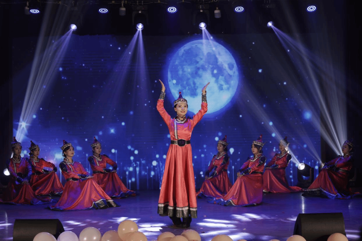 豪迈奔放的舞蹈《戈壁清风》和《阿穆尔赛罕》为观众展现了蒙古族人民勤劳勇敢、善良淳朴的美好性格,园保学院的姑娘们英姿飒爽,带你回归辽阔的大草原。