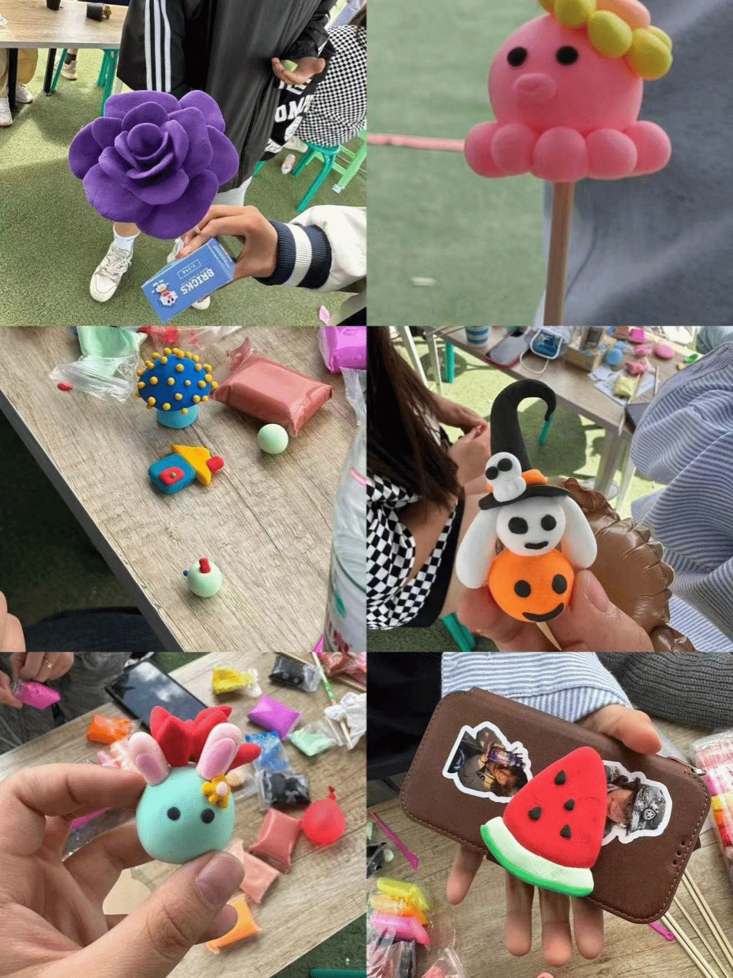 其中,在“花遇”游戏中,同学们各显神通,想象丰富,这些黏土不仅展示了同学们的艺术才华,也让他们在创作中实现了自我表达和心理调适。