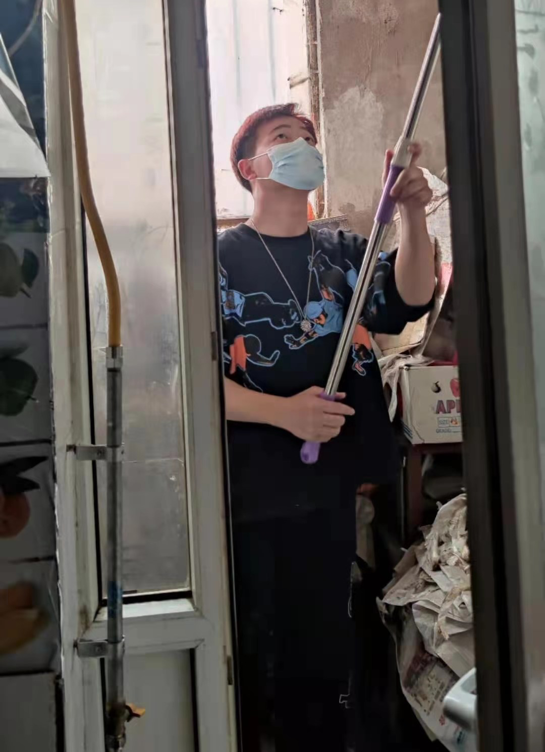 3月26日下午,志愿者们前往叶大姐家帮助她打扫卫生,大家拿着抹布、扫帚和洗涤剂等清洁用品帮助叶大姐打扫客厅、厨房、卫生间等房间的卫生死角,帮助叶大姐更换窗帘,经过大家的共同努力,叶大姐家焕然一新,叶大姐心存感激地说:“感谢你们经常看我,使我得到了许多的温暖一点都不孤独。”卫生打扫完后,志愿者们坐下来与叶大姐以及叶大姐的父亲聊天,送去贴心问候的同时,仔细聆听着叶大姐对于我校的认识,学到了许多课堂以外的知识。