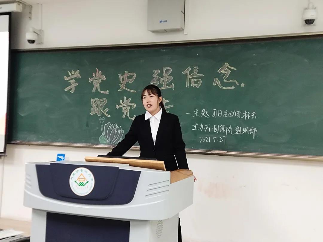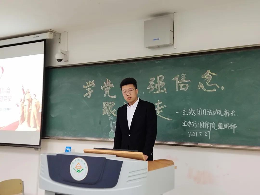 于南教222教室举办主题为“学党史,强信念,跟党走”的团日活动竞标会。团委老师郝凤英出席本次活动,分团委组织部张晓昂作为本次活动的主持人。