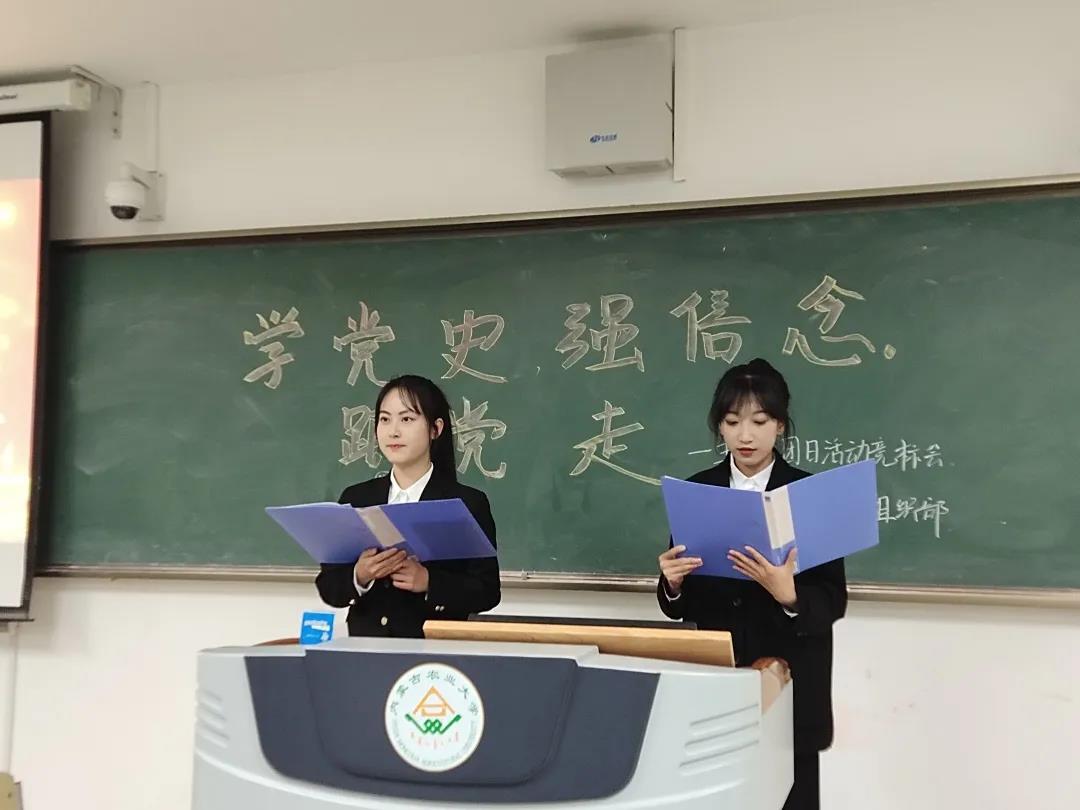 随后,18级的王浩羽、王丹同学为大家分享了实习期间的工作内容和趣事。从两位同学的分享中,同学们了解到农业事业的重要性,清楚地认识到农业发展的迅速,身为农学子更应该努力学习,将小我融入大我,厚植爱国情怀,做一懂双爱农科学子,为农业到发展贡献自己的一份力量。接着,由赵彤、陈艳赫同学为大家带来诗朗诵《永远的旗帜》。最后,郝凤英老师对本次竞标会总结到:从团日活动竞标会的汇报中能感受到一个团支部的活力与凝聚力,希望同学们能够用心组织每一次的团日活动,提升班级凝聚力。希望同学们能够继续加强对党史的学习,增强信念,将对党的热爱融入自身,努力学习,团结同学,爱护集体荣誉。