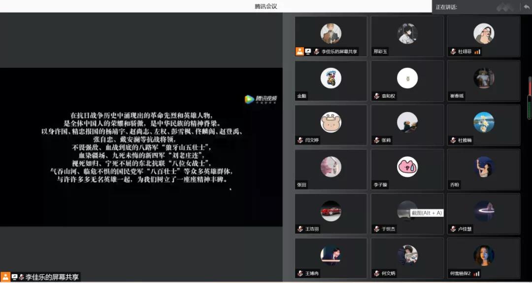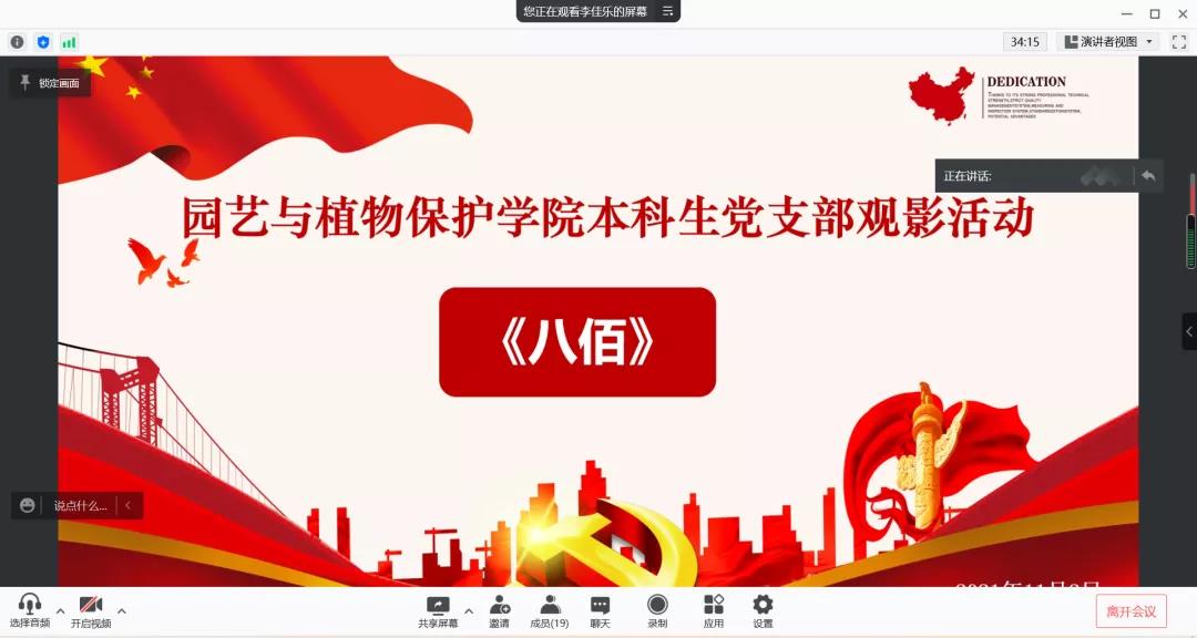 本科生党支部组织全体党员同志通过腾讯会议集体观看红色影片《八佰》。