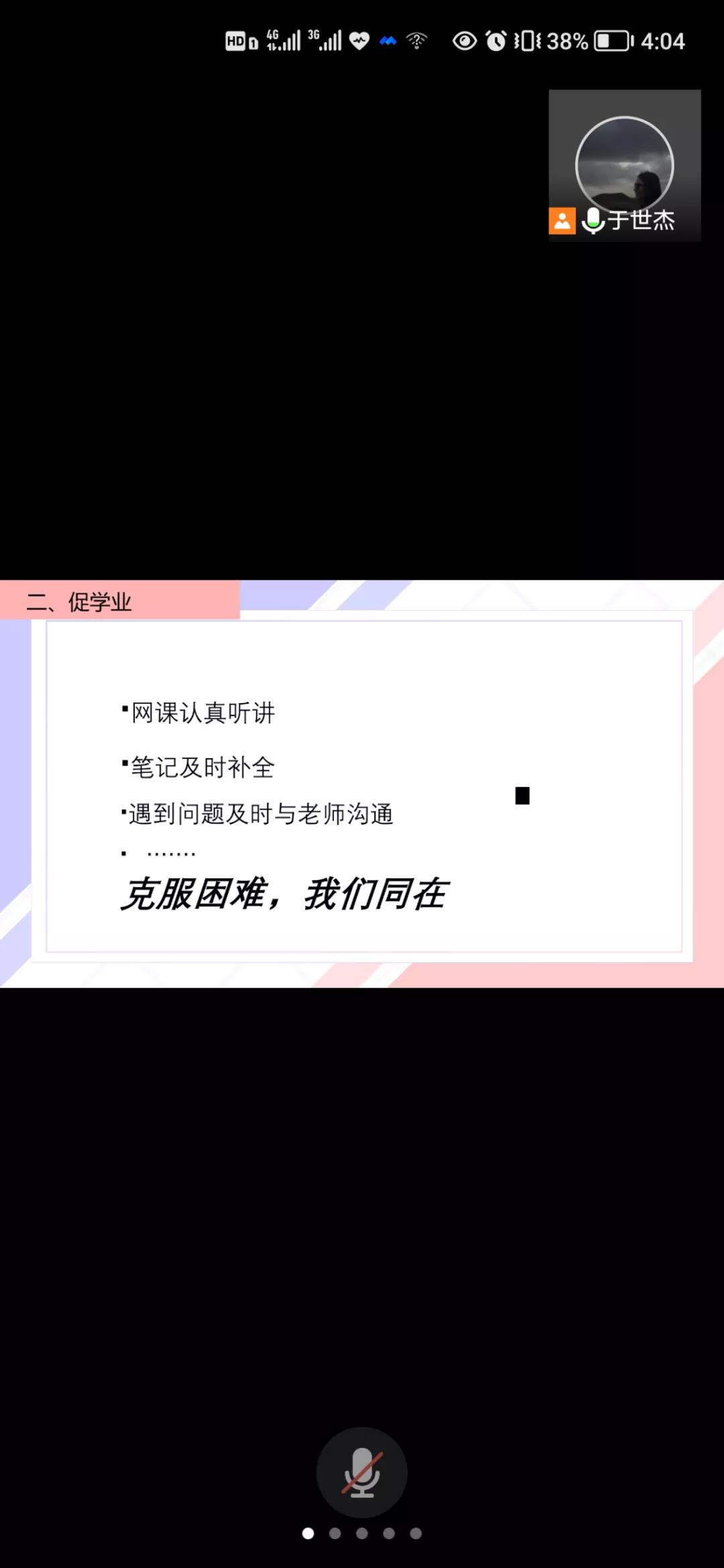 活动伊始,团支书向大家介绍了“抓学风,促学业”的重要性,重点强调了课堂学习和学风建设。帮助同学认知、认同、践行学风,培育优良学风,规范课堂纪律和日常行为。接着,面对此次“疫”情,李萌同学分享了自己做志愿者时的感悟,她讲到:“相比上次疫情爆发,大家都有了应对的经验,做好防护,不会恐慌”。最后,团支书对本次活动进行总结,她希望同学们做好战“疫”的同时,也要做好学生本职工作,认真学习,以必胜的信心迎接考试。