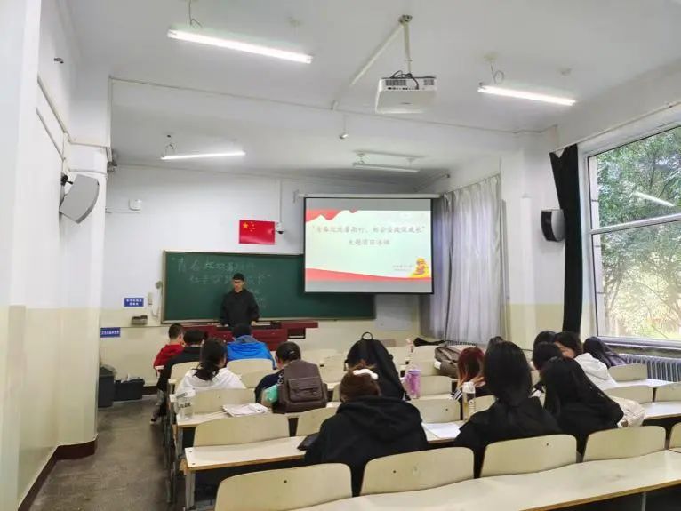 活动中,团支书娄嘉鑫讲解了“社会实践促成长”的重要意义。随后,同学们积极上台分享自己在暑假期间的社会实践心得,同时大家讲述了自己对未来的规划与奋斗方向。接着,团支书带领同学们一起学习了校规校纪,加深学生的劳动意识,使同学们约束并自省自身行为,明确自身目标。最后,娄嘉鑫总结社会实践开展情况,他讲到社会实践活动不仅是一种高效使用的学习方式,也是当代国家发展的重要战略。作为新时代的青年人应树立远大理想,制定适合自身的学习目标,提高行动力,不断向目标奋进,在奋进中学会自省。他鼓励同学们在大学生活中应积极参加校内校外的志愿活动,在学习生活中提高自己的实践能力,为社会贡献青春力量。