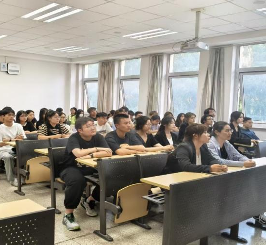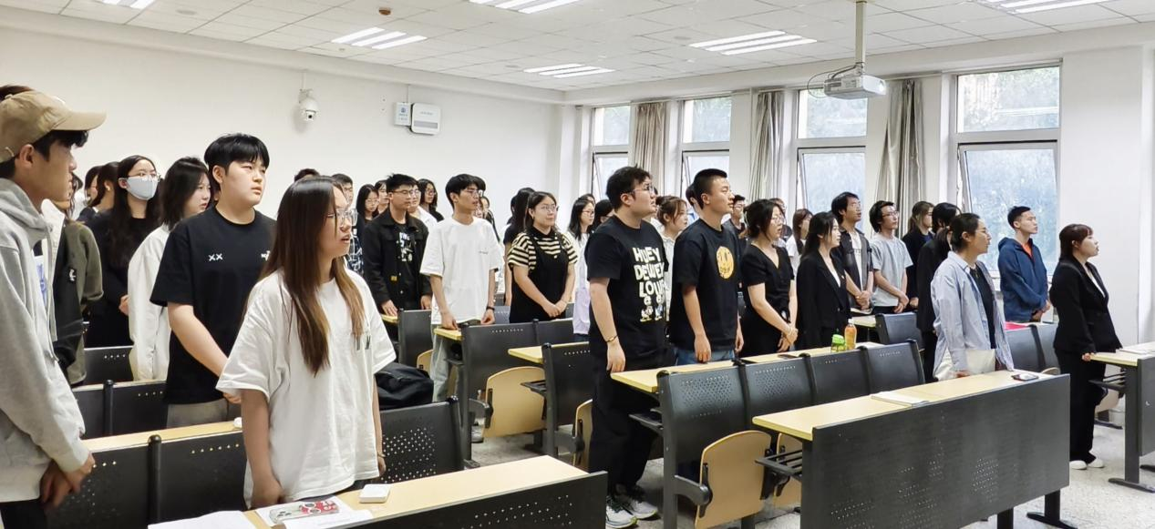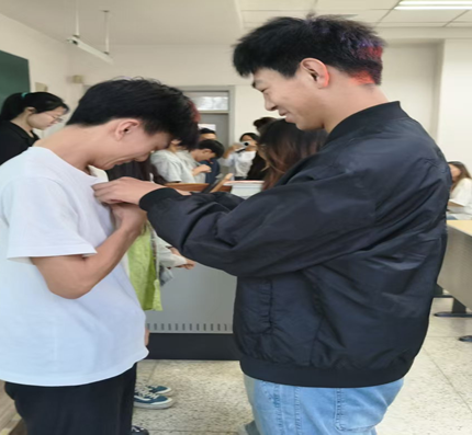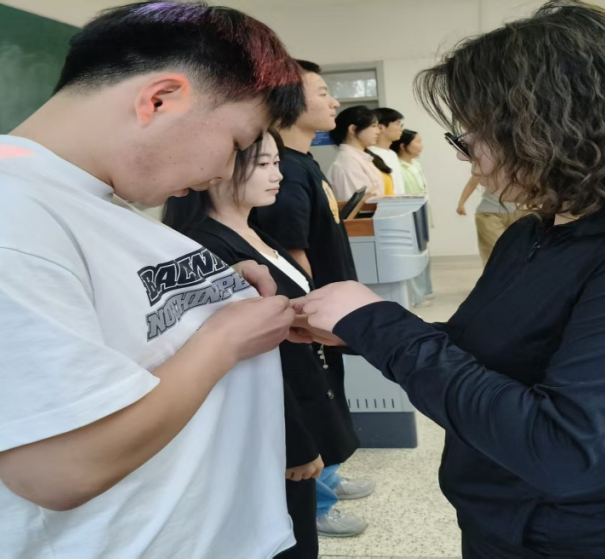 活动伊始,各班团支书为本期38名新发展团员佩戴团徽,熠熠生辉的团徽佩戴在新团员左胸,象征着新的责任与使命。
