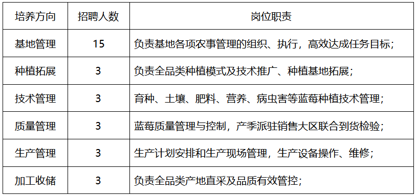 3、岗位要求:全日制本科学历,大农类优先(农学、园艺、园林、植物保护、植物科学与技术、设施农业、种子科学与工程、农业资源与环境、生物技术、生物科 学、食品科学与工程等相关专业);热爱农业,愿意投身现代农业长期发展,责任心强、吃苦耐劳。