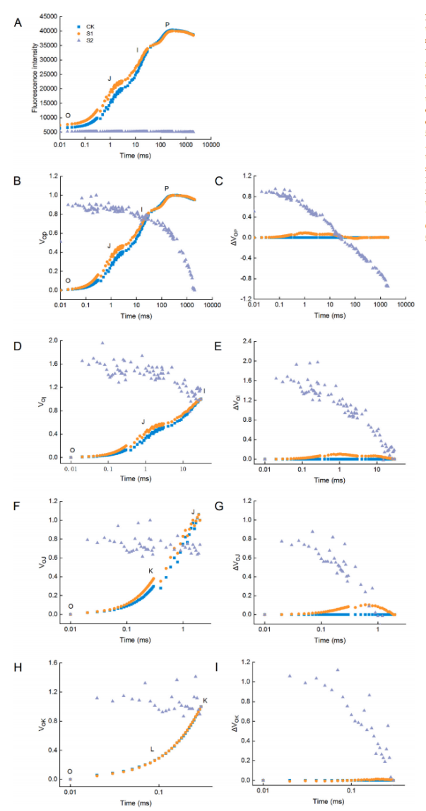 图左:胁迫结束时欧李叶片OJIP曲线