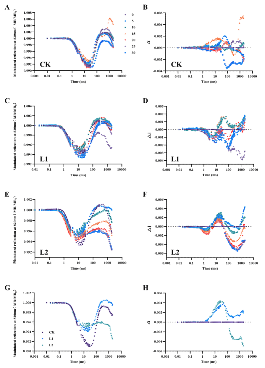 题为 “Relationship between photosystem activity and ultraweak luminescence excitation in Cerasus humilis leaves under low light stress” 的研究聚焦光胁迫对UWL与PS功能关系的探索,以欧李为试验材料,通过梯度遮光处理,阐明了欧李叶片PS活性与UWL的胁迫响应机制:重度弱光胁迫导致PSII反应中心崩溃(Fv/Fm↓、PIABS↓),类囊体膜解离阻碍电子传递(QA→QB受阻),同时PSI过度氧化破坏末端电子还原能力(REo/RC↓);轻度弱光胁迫仅降低PSI电子通量(REo/CSm↓),PSII结构保持完整。UWL关联性表明,UWL强度在重度弱光胁迫下暴跌,且与PSII活性参数呈极显著正相关,证实UWL衰减直接反映PS光化学损伤;轻度弱光胁迫则通过调节PSI电子流间接影响UWL。该研究阐明了PSII光化学效率下降及PSI电子传递阻塞是UWL受到抑制的关键诱因。此项研究确立了UWL作为无损监测光合功能障碍的生物标记物,其强度变化可量化评估胁迫损伤程度,为抗逆机制及抗逆育种提供新思路。