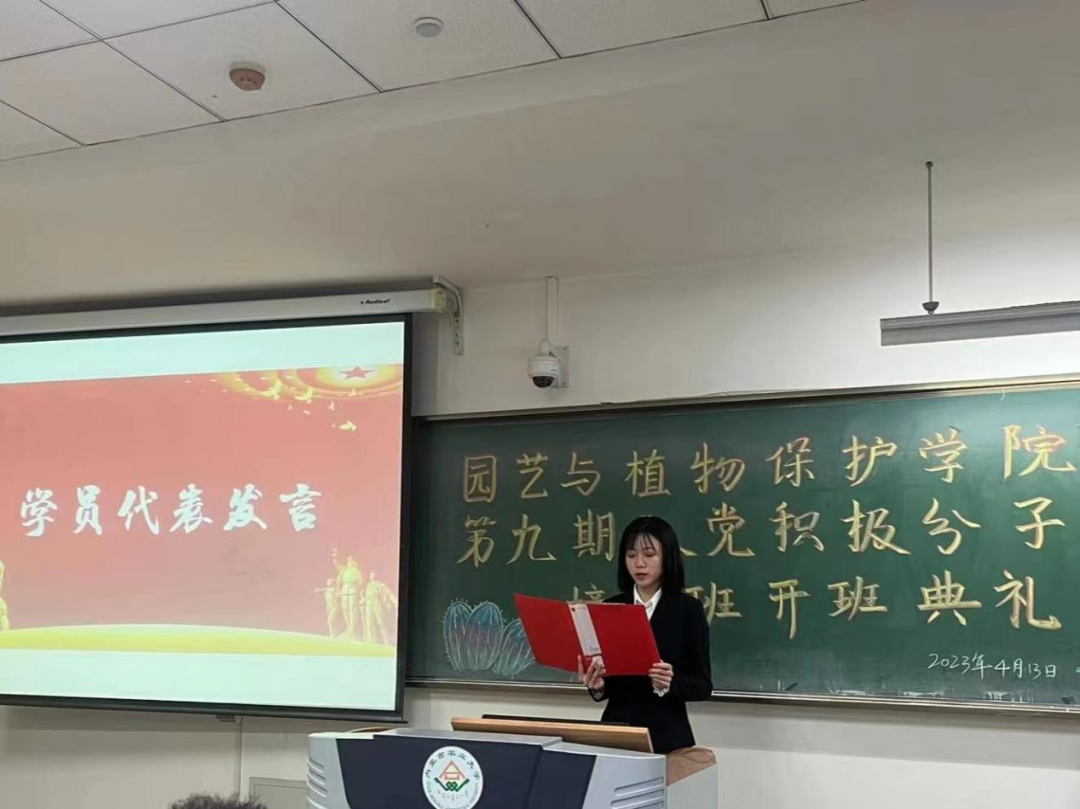 开班典礼在雄壮的国歌声中拉开序幕。典礼第一项,由本期积极分子本科生学员代表麻宇彤和研究生学员代表赵星月发言:我们青年学生作为入党积极分子,必须刻苦努力地学习,积极地参加社会实践活动。随时随地的做力所能及的有利于人民大众的事情;“提灯照山河,灯火曾映泰山”,中国青年与世界同生,与时舒卷,与天不老,与世无疆。一百年前,中国共产党党员披荆斩棘,浴血重生,一百年后,新时代的我们流着同样的红色血液,应该秉承同样的精神,奔向未来盛世。