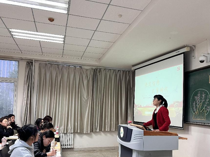 团委老师郝凤英以《坚定信仰,不负时代》为题进行培训。