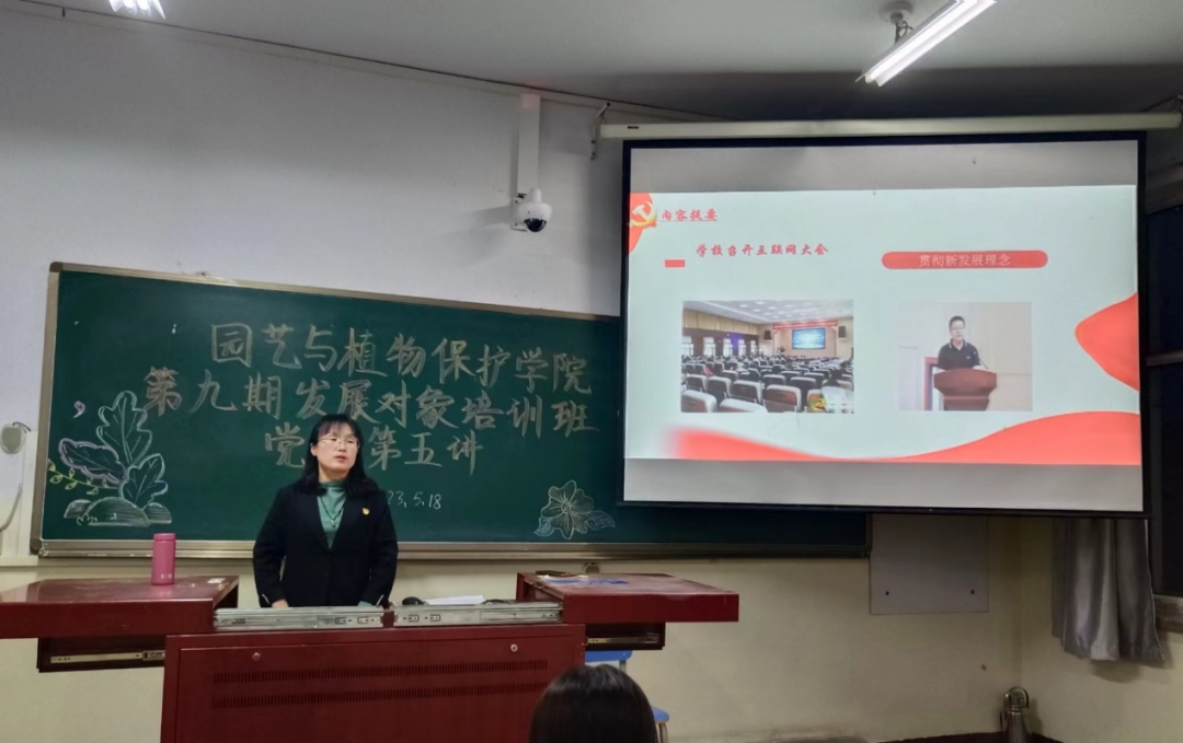 第九期发展对象培训班在东主410教室参加第五次党课培训,本次党课以“贯彻新发展理念从我做起”为主题,由学院党委副书记李艳担任主讲人。