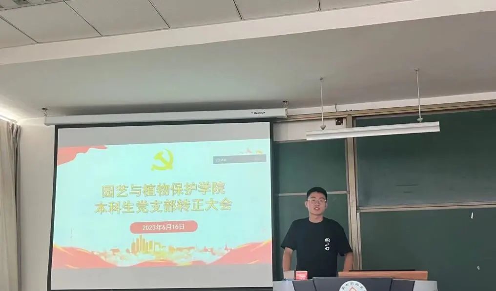 园艺本科生党支部于南教414教室召开支部大会,讨论战金龙、黄国强等8名本科生中共预备党员转正事宜。会议由支部书记郝凤英主持,支部全体党员参加。