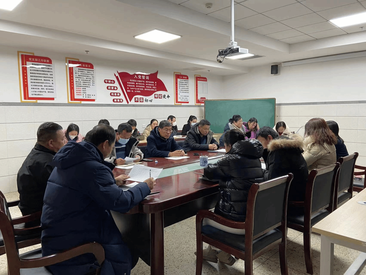 党委在生科楼419会议室召开2023年度党支部书记述职报告会。学院党委委员、党支部书记、行政科室负责人、教研室正副主任、工会主席参会,党委书记靳国斌主持。