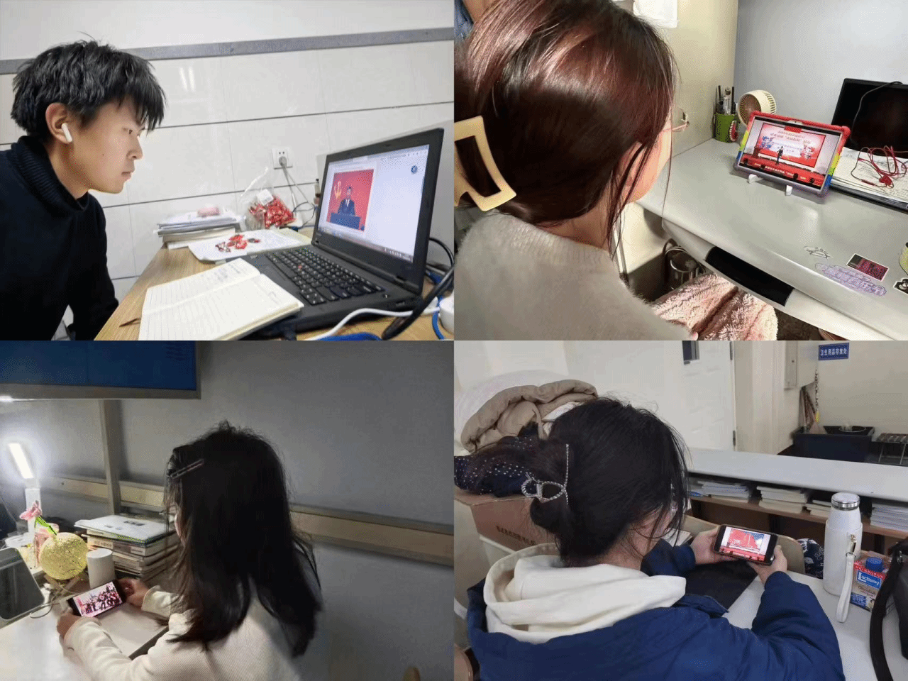 全体本科生、研究生在网上观看宪法晨读活动,学习宪法知识的同时也感受到了宪法的力量。