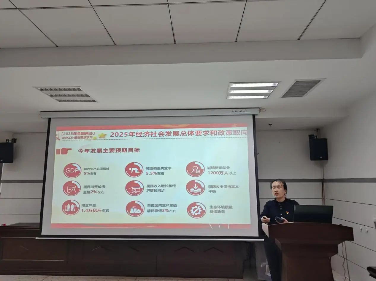 李艳副书记讲到:广大入党积极分子应深入学习两会精神,提升政治觉悟。通过集中学习、专题讨论等方式,理解国家发展的总体方向和政策重点,立足"学、思、践、悟"四个维度,将两会精神转化为实际行动,以“向上”的奋斗姿态和“向善”的服务意识,在学习和实践中锤炼党性,为社会发展贡献力量。