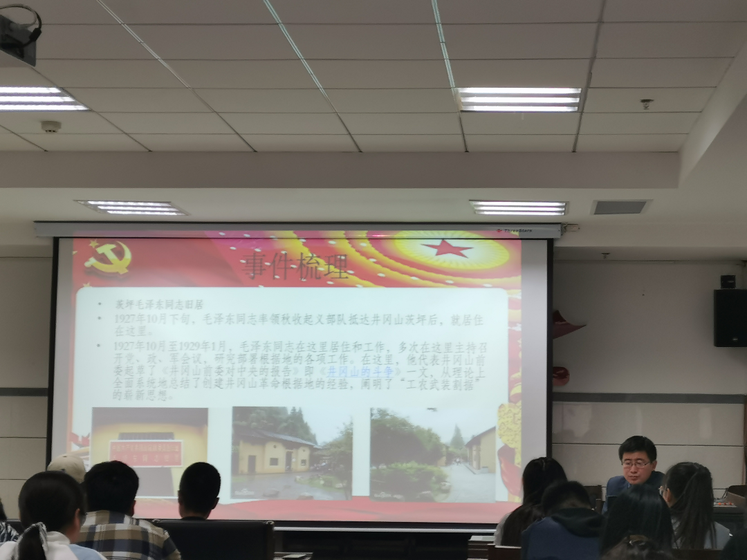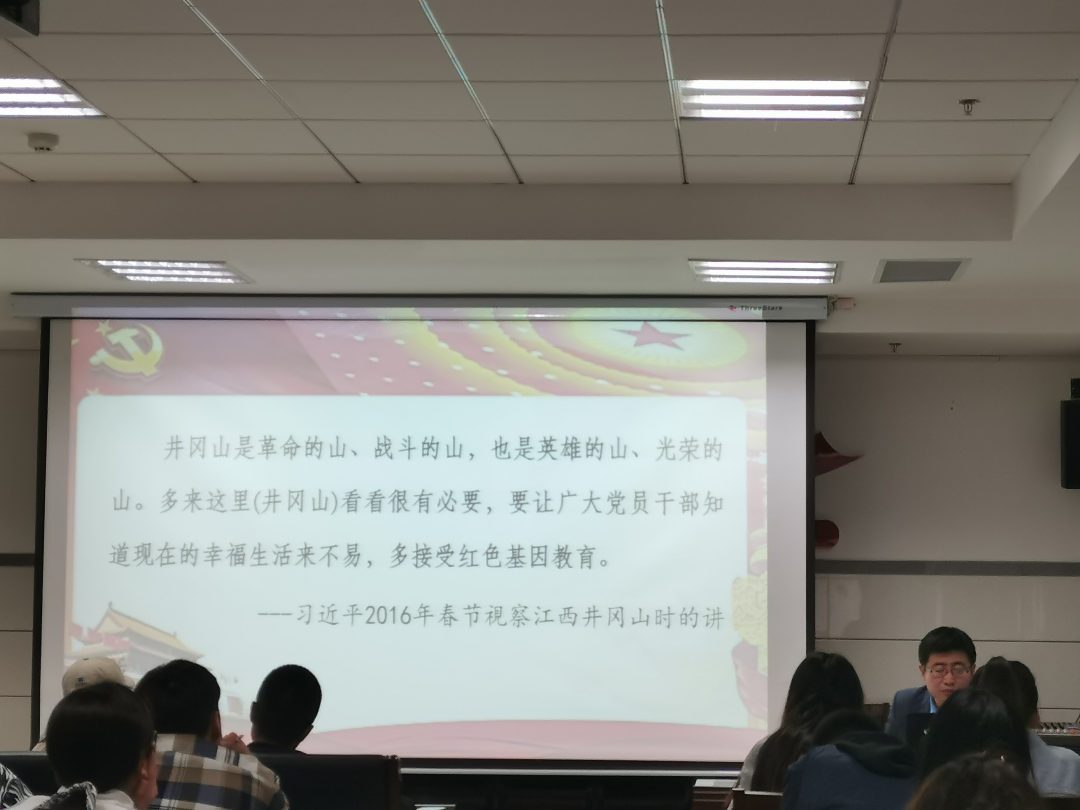 张老师以“传承革命优良精神 潜心问道立德树人—井冈山精神的基本内涵及其时代启示”为主题,从井冈山精神产生的背景、科学内涵、现实意义以及时代价值四方面论述了中国共产党与井冈山结下的革命情结。正如同总书记在2016年春节视察江西井冈山的讲话中说道:“井冈山是革命的山、战斗的山,也是英雄的山、光荣的山。多来这里(井冈山)看看很有必要,要让广大党员干部知道现在的幸福生活来之不易,多接受红色基因教育。”每一位发展对象也要深刻理解井冈山精神的丰富内涵,不断指导自己的学习和生活。