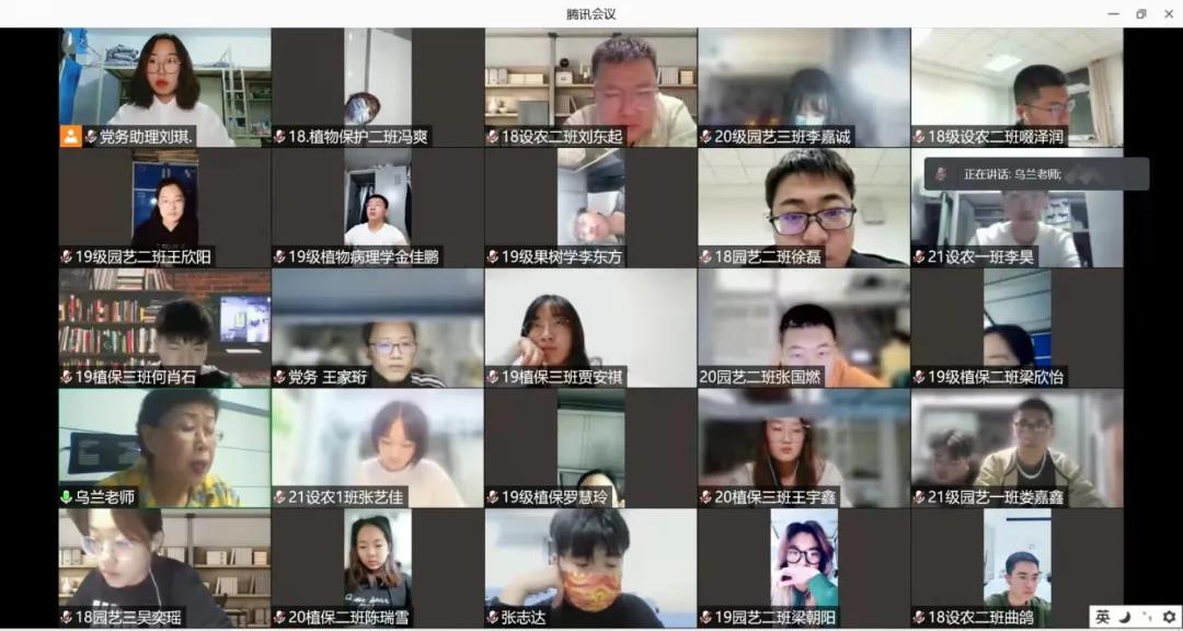 原食品科学与工程学院党委书记,现任内蒙古关工委老教授报告团副团长乌兰老师担任主讲人,全体第六期发展对象、第三期青马班成员及党务助理参与本次党课。