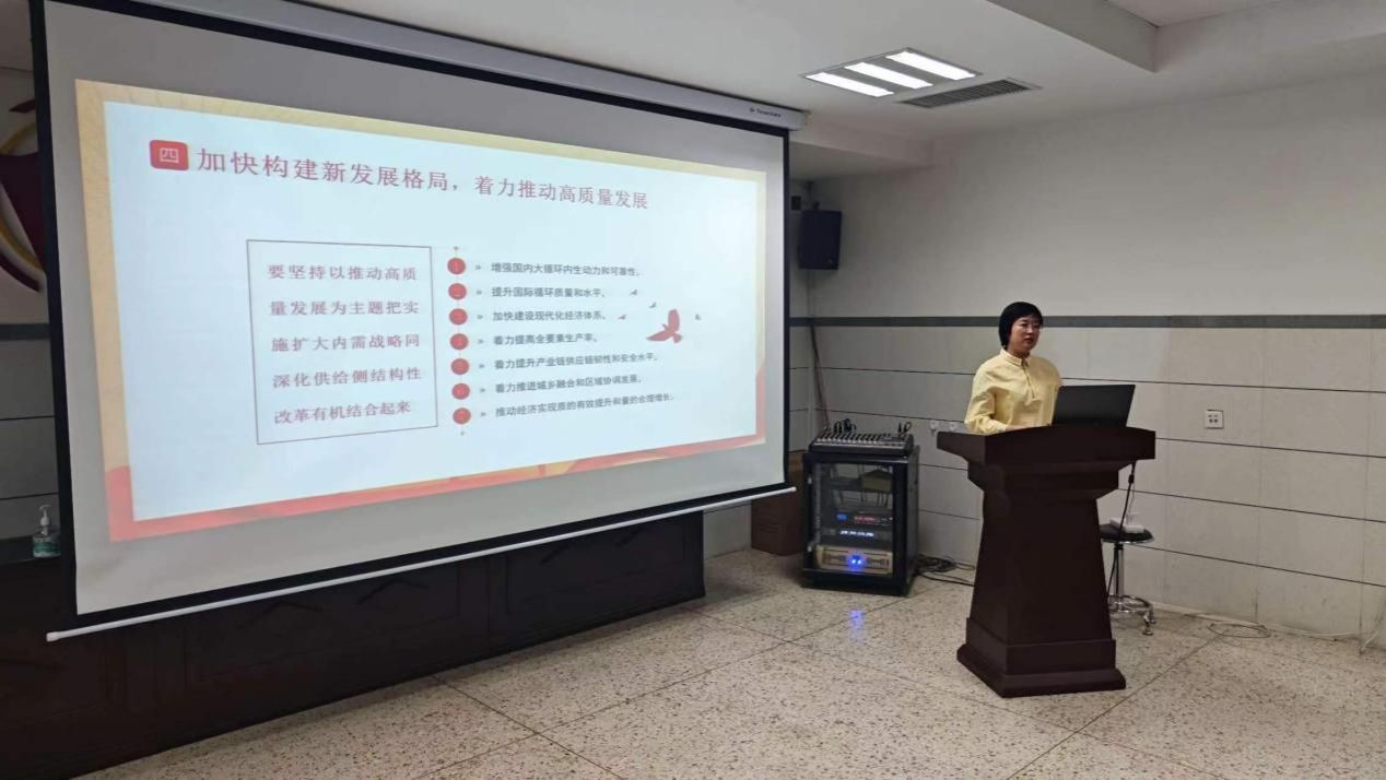 其次,尤丽老师强调加快构建新发展格局,着力推动高质量发展。提出高质量发展是全面建设社会主义现代化国家的首要任务、发展是党的执政兴国的第一任务。要坚持以推动高质量发展为主题把实施扩大内需战略同深化供给侧结构性改革有机结合起来。