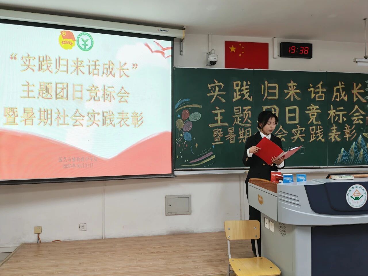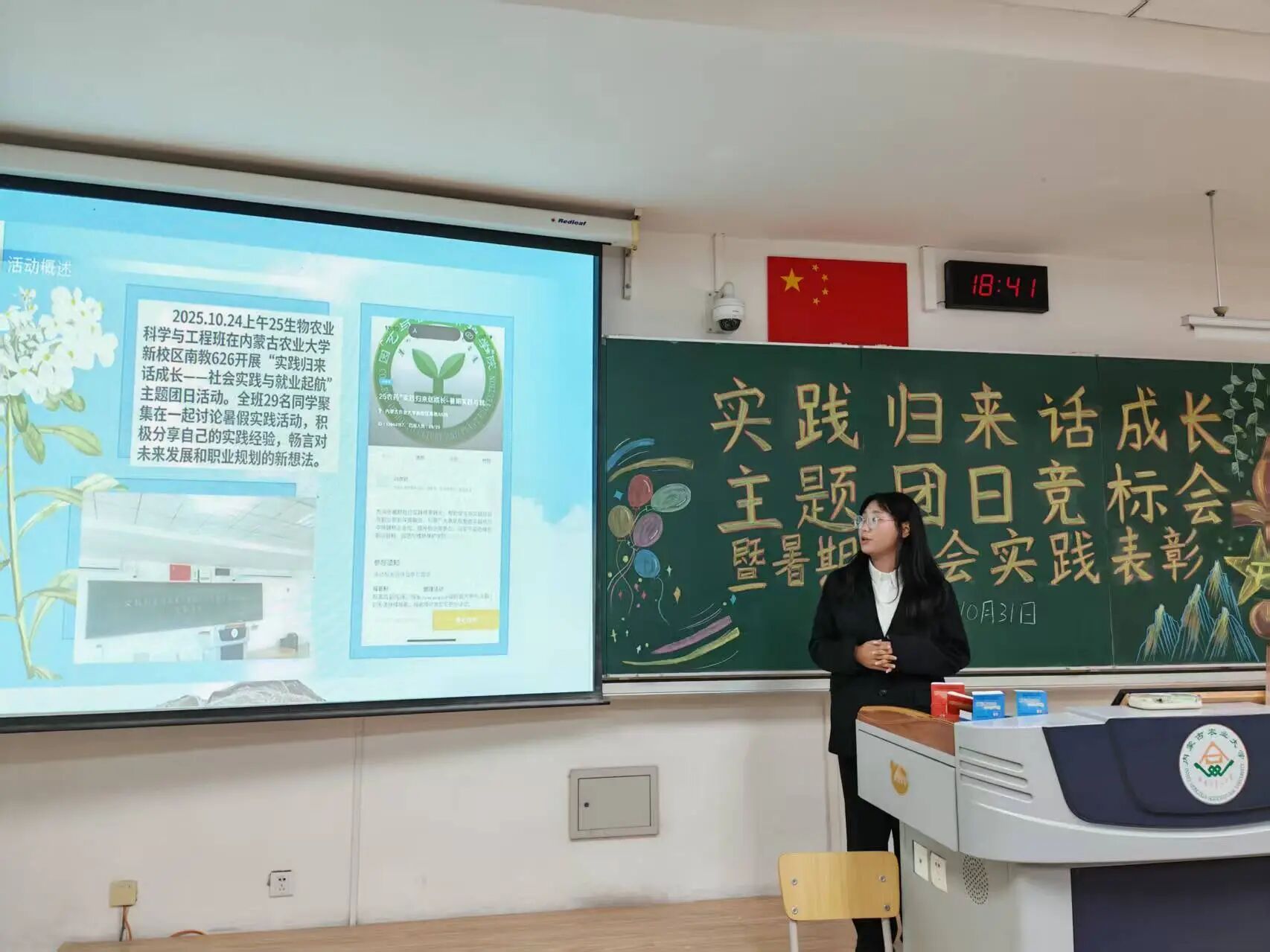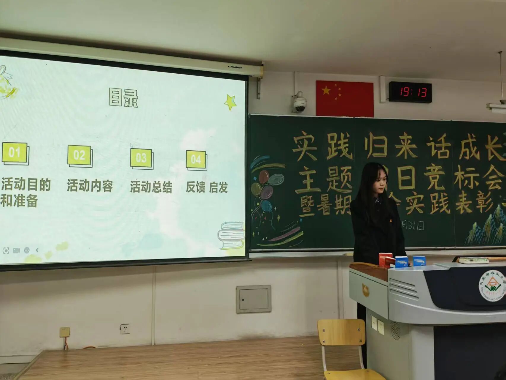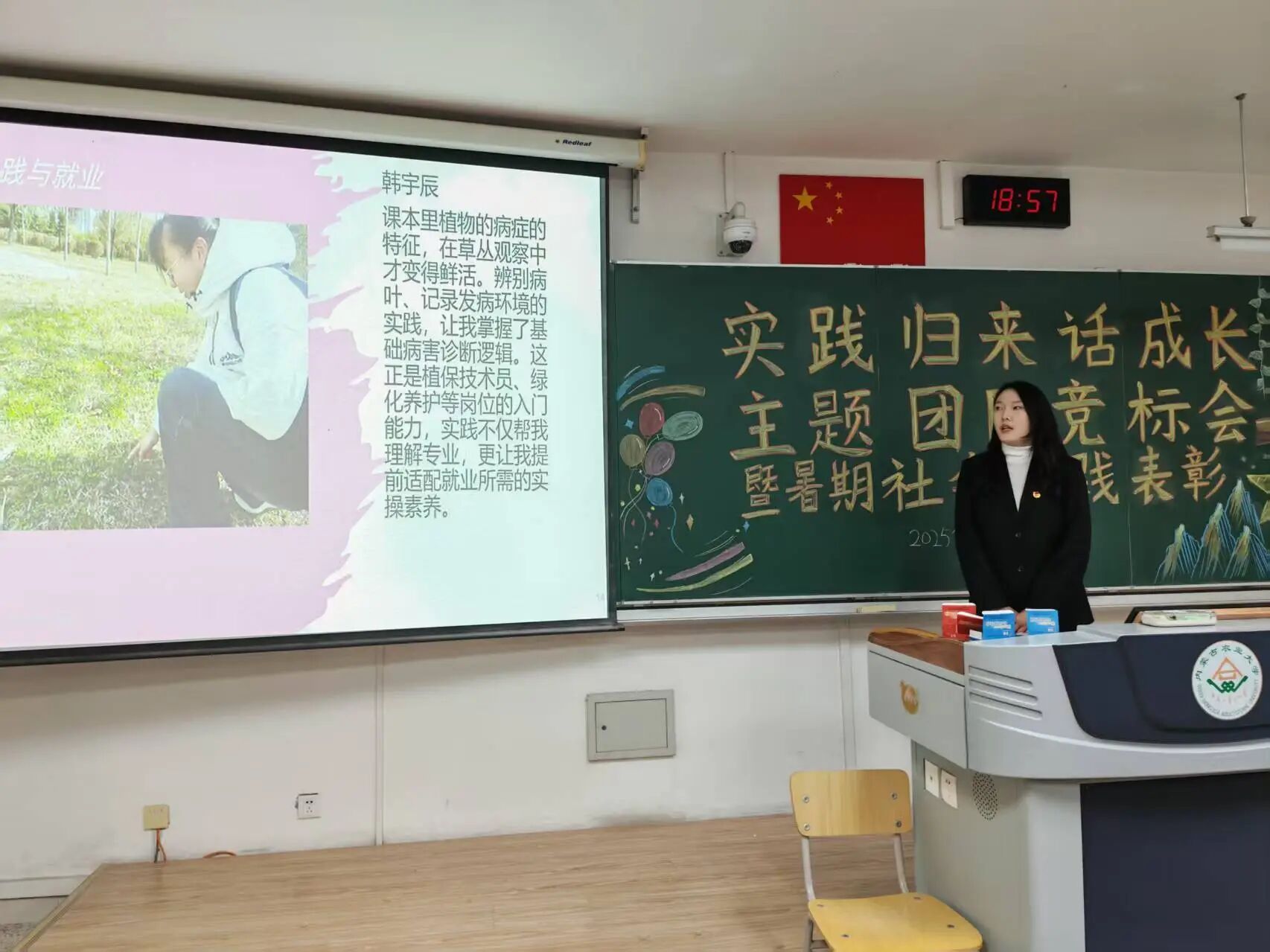 在社会实践表彰环节,优秀实践队员靳菡、戎静作为代表发言。她们表示,社会实践不仅提升了个人能力,更是对时代呼唤的回应,有效 锻炼了沟通协作与团队意识。分享结束后,学生会主席禹芙蓉为优秀实践队员代表颁发证书。