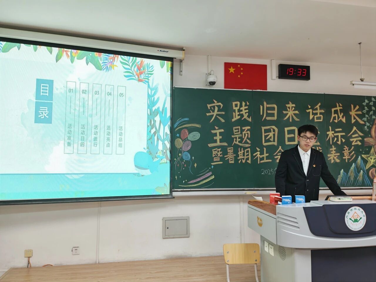 10月31日晚,电影天堂 “实践归来话成长--暑期社会实践与就业起航”主题团日竞标会暨暑期社会实践表彰大会在南教221教室顺利举行。大三学生干部吴雨轩、宋百轩及第八届分团委主席团全体成员受邀担任评委,刘诗甜担任主持人。经过前期筛选,共有来自三个年级的9个团支部进入现场汇报环节,全体团干部及优秀社会实践队员等90余人参加。