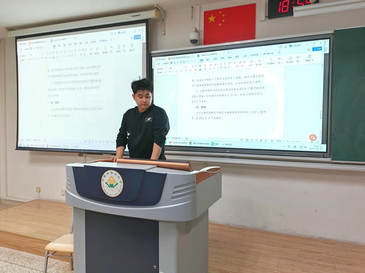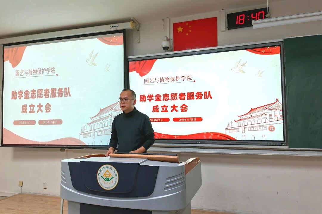 于南教518教室举行助学金志愿者服务队成立大会。辅导员尚飞、舍风建设中心工作人员及2025级获评助学金学生共同参会。