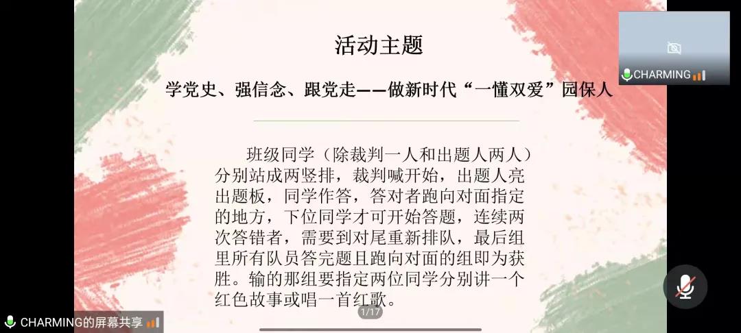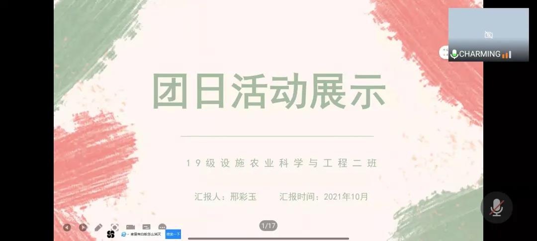 会议中,在郝老师对团干部职能进行讲解后,各部室对负责的工作进行详细介绍。组织部邀请了19级设农二班邢彩玉、20级植保三班韩钰荞,两位团支书以自己班级团日活动为例,为同学们展示了开展好一次团日活动从准备、进行、总结每个环节都要注意些什么,同时与大家分享了如何调动同学们的积极性,增强班级的凝聚力的一些经验。宣传部的陈瑞雪同学围绕近期所举办的班徽设计大赛进行动员,希望每个班级能有自己的标识和文化,鼓励大家能够积极参与到其中。电影天堂的崔玥同学围绕团日活动新闻稿件的要点做了明确说明,希望同学们能够将班级的风貌更好地展示出来。此外,组织部的石霖同学、社服部的王玺媛分别就智慧团建系统、到梦空间系统的重要性和具体操作进行详细讲解。最后,郝老师对此次培训进行总结。她讲到,团干部作为是每个基层团组织的骨干与核心,是团组织实现各项功能的坚强后盾,并在会上对每位团干部提出三点要求:努力学习,开拓视野;严于律己,甘于奉献;谦虚谨慎,作风扎实。同时,郝老师对于呼和浩特疫情突然严峻情况,希望所有的团干部以身作则,带领和督促班级的同学做好防护措施,不传谣、不信谣、不造谣,积极配合好学院的各项工作,保持良好的心态,避免焦虑。