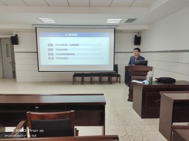 于生科楼419召开毕业班班主任工作会议,对近期即将离校的毕业生工作进行部署。党委副书记张卫中老师主持会议。