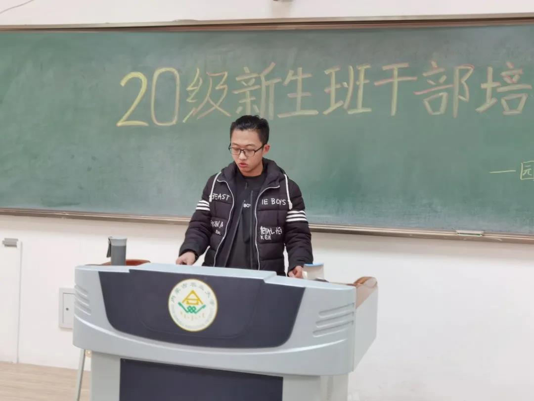 在新区南教111教室开展了20级新生班干部培训会。学办老师尚飞主持会议,团委老师郝凤英、学生会各部室负责人、20级班干部参加了本次会议