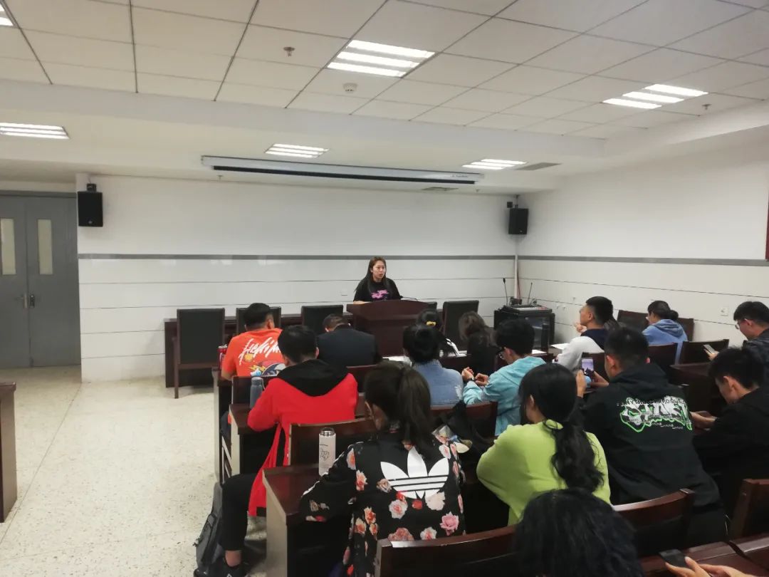 于生科楼419举行学生会主席团换届竞选答辩,学生工作办公室老师尚飞、团委老师郝凤英、学生会主席出席,学生会干部担任大众评审团参加此次答辩会。