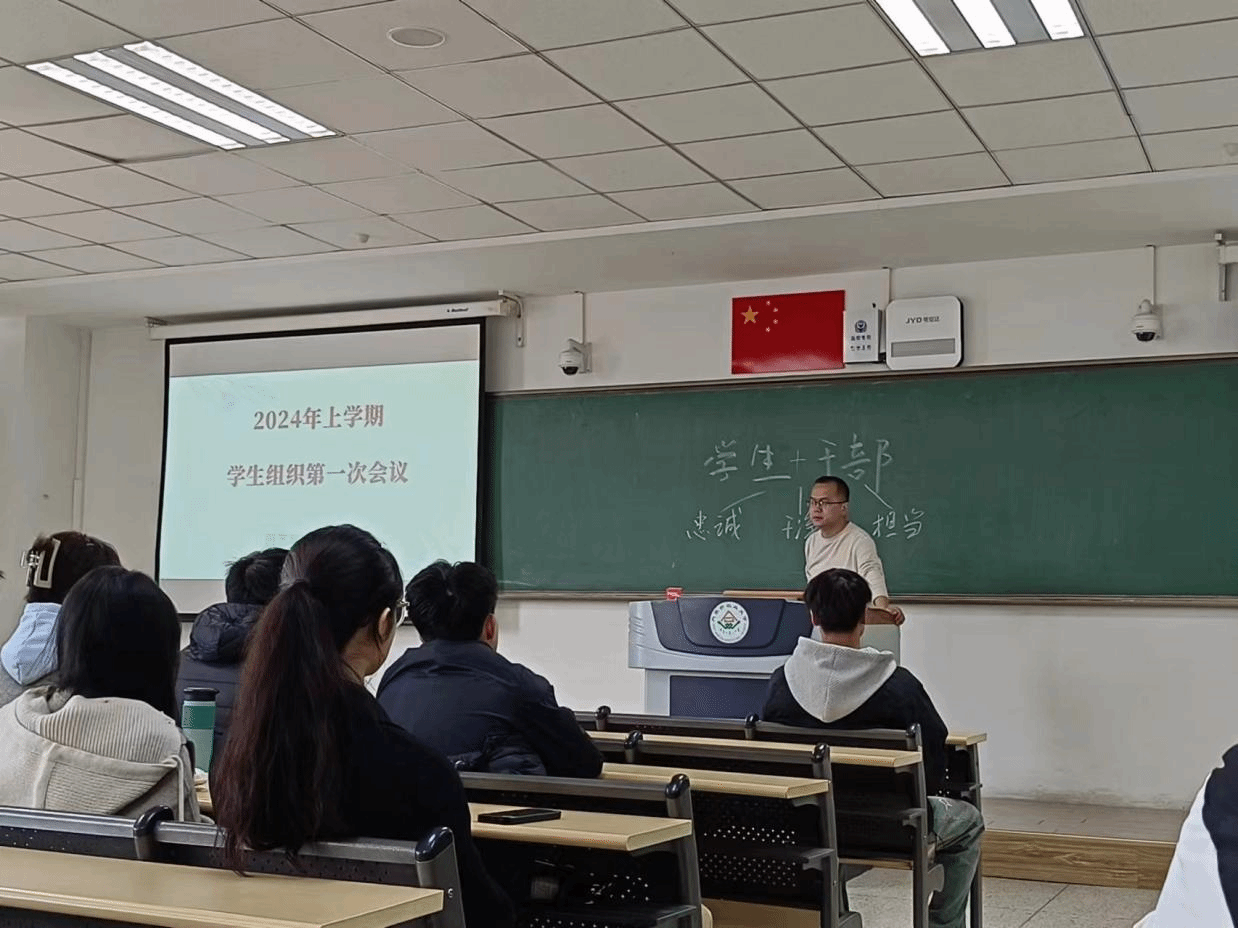学生组织在南教224教室召开2024年上学期学生组织第一次会议。会议由学生组织主任周旭东主持,学办辅导员尚飞以及秘书一处、学风建设中心、舍风建设中心、心理健康中心、体育健康中心等学生组织成员出席。