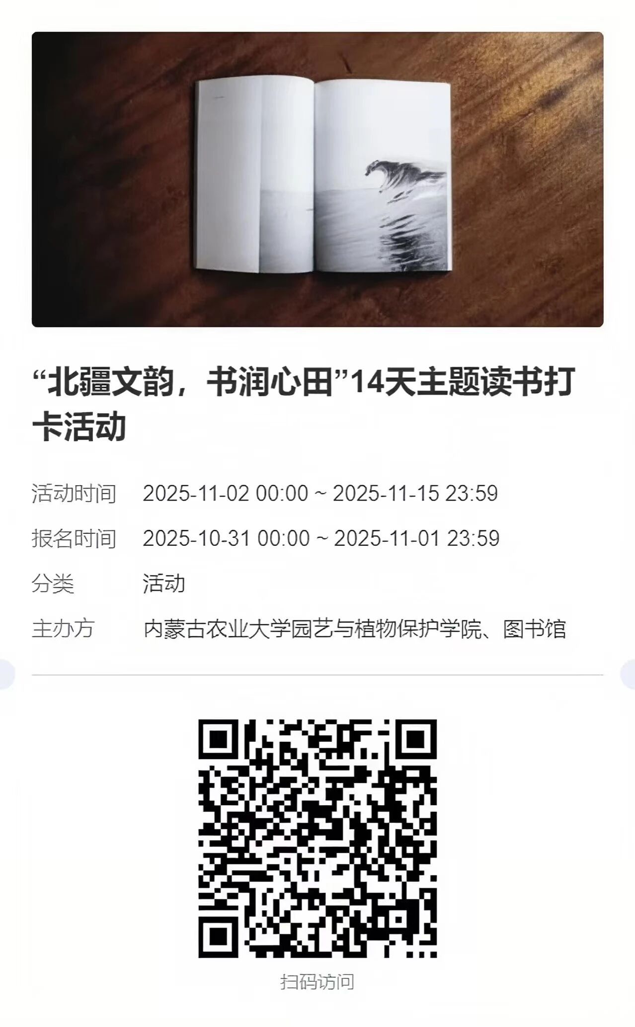 为激发师生阅读热情,营造浓郁书香校园氛围,电影天堂 联合图书馆共同发起“北疆文韵,书润心田”14天主题读书打卡活动,将于2025年11月2日至11月15日正式开展。