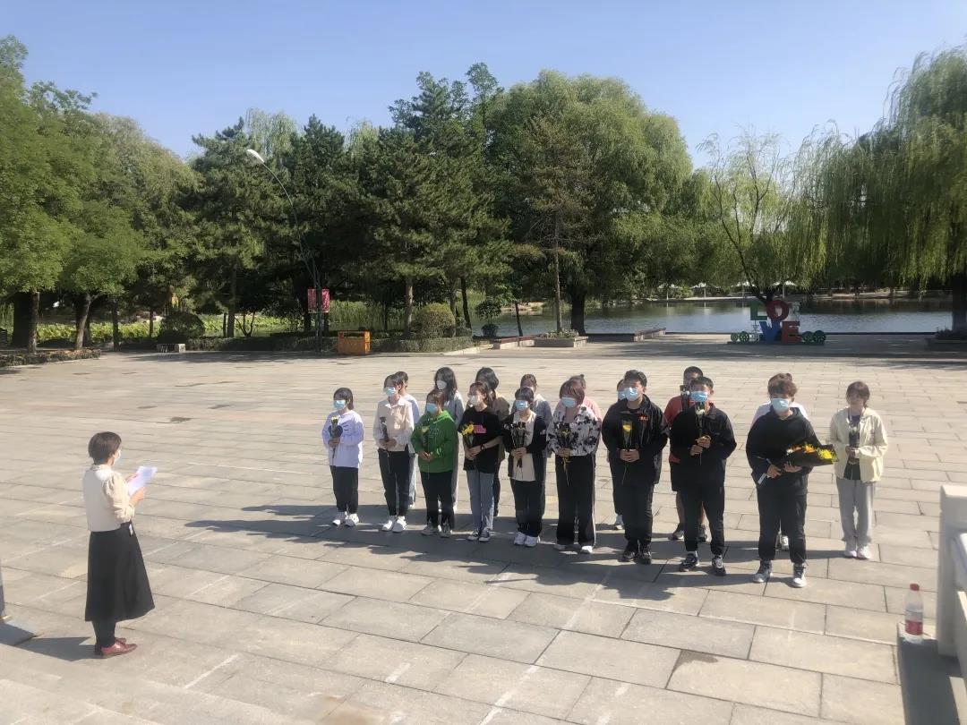 下午2:00,同学们在学院团委老师郝凤英的带领下统一乘车抵达呼和浩特市青城公园南门。整顿好队伍后,大家来到纪念碑前,郝凤英老师献上了哀悼词,以表师生对革命先辈的悼念与缅怀。集体三鞠躬并默哀3分钟后,最后同学们才有秩序地把手上的鲜花献上,展示他们的心意。最后,在郝老师的带领下,同学们重温入团誓词。