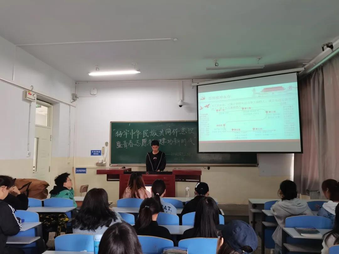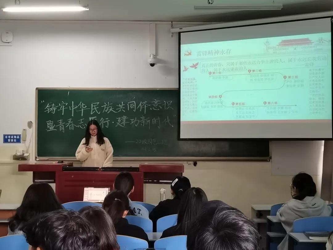 本次活动中,团支书吕姝睿带领同学们学习了有关铸牢中华民族意识的相关政策,向大家传达了中华民族共同体意识是国家统一之基、民族团结之本、精神力量之魂。在大家分组讨论学习后一起观看了建党一百周年的记录视频。紧接着,吕姝睿带领同学们一起学习雷锋同志的“螺丝钉精神”。她讲到:“螺丝钉精神是自觉地把个人融入党和人民的事业之中去,个人服从整体,服从组织,忠于职守,兢兢业业,干一行爱一行,全心全意为人民服务的精神”。随后,张阔洋同学与同学们分享了自己寒假回家做志愿者的经历,体会到了奉献的乐趣。活动最后,班主任田原老师对团日活动进行了总结,强调了民族团结是最重要也是最基础的,并对同学们传达了新学期的祝福。