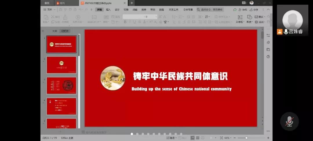 20级园艺三班全体同学在腾讯会议召开了以“铸牢中华民族共同体意识”为主题的线上团日活动。本次活动由团支书吕姝睿主持,班主任田原老师及全体29名同学参加。